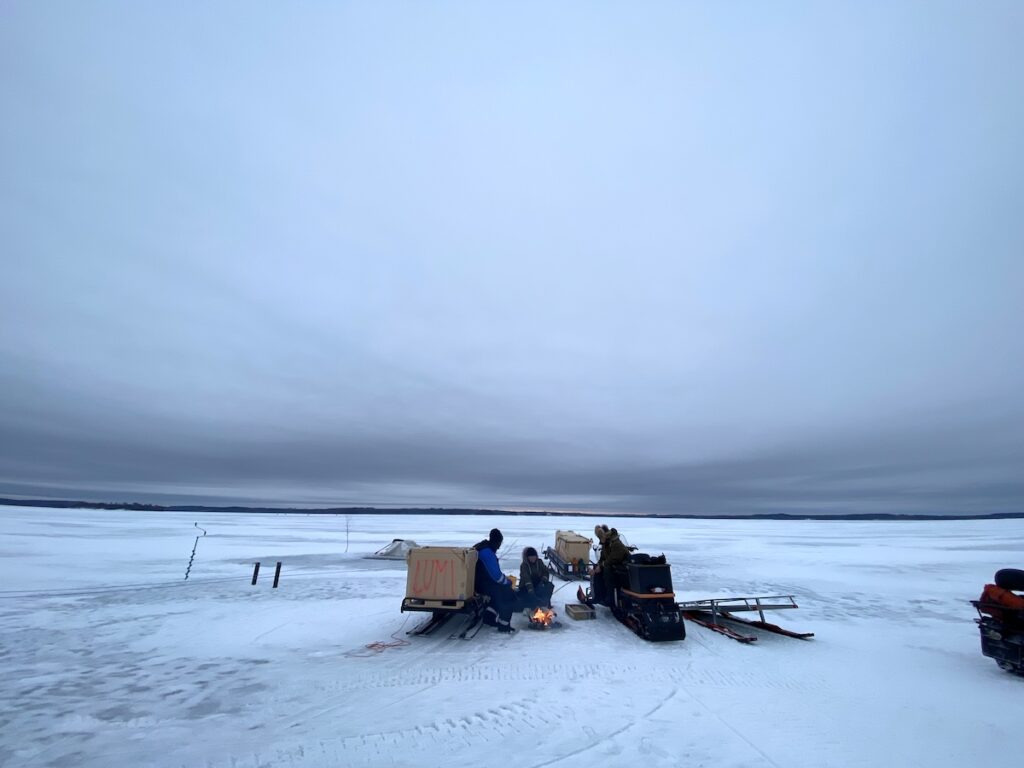 Captain Karoliina has led efforts on the ice with winter seining. Ice conditions are very hard, but larger catches mark the turn towards more Spring daylight. This seining helps remove nutrients from a very clear lake of Puruvesi, which you can see in a video here.